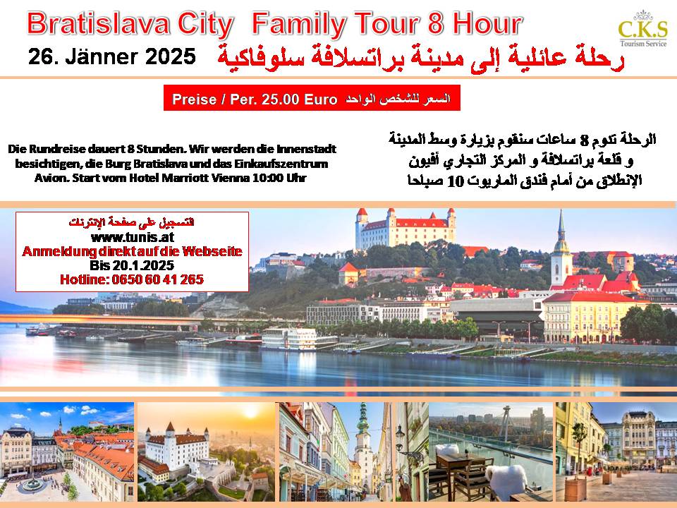 26.01.25 So. Bratislava City Tour 8 Std. Preise: 25 € pro/Per. anmelden